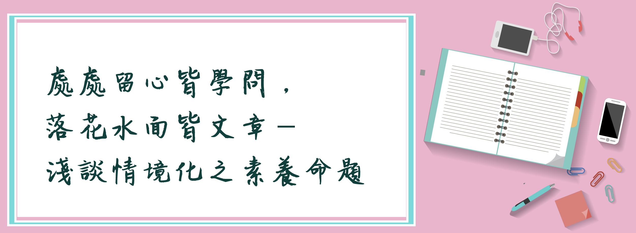 一個具備核心素養的人,除了具備面對現在生活和未來挑戰所需的知識和技能之外,同時還必須能夠有效地實踐這些知識和技能。也就是強調一個人將知識和技能適當地、正確地應用在生活情境中的能力。未來大考在試題素材的引用上,也將朝著融入生活情境的方式來設計與命題。期待未來的高中生,在學習的過程中,不再過度的背誦片段而零碎的知識;而是能將所學習到的能力,類化和遷移至真實的生活情境之中。並且在面對真實的問題時,可以正確地判斷,並且整合運用相關的能力,進而有效的解決各種生活中所遭遇的問題,真正融貫理解和欣賞宇宙萬物間的學問與奧妙。