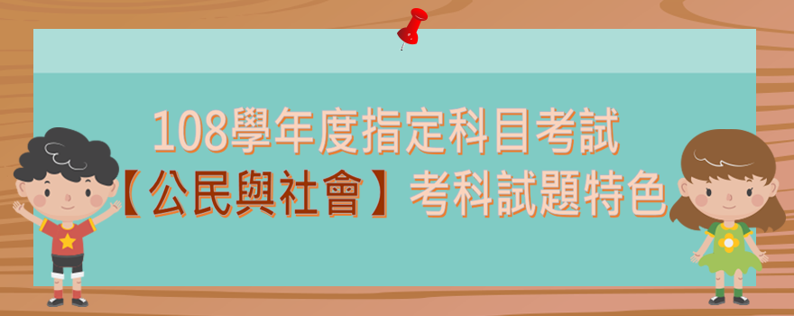 今年公民與社會科試題的最大特色是以生活情境中的事件作為命題的素材,將真實生活情境結合學生在公民與社會課堂上所學知識,設計生動且貼近生活現實的試題,測驗考生是否能將所學運用在生活情境上,鼓勵考生運用所學分析、思辨日常生活中與公民與社會科相關的議題。例如第1題的電子報標題、第5題的家庭暴力、第10題的女性參政權利、第16題的出售筆電情境、第18題在小吃店白吃的法律責任、第24題行動支付與貨幣的關係、第30-31題自由之家調查報告、第34-35題因宗教斂財問題修法的情境、第36-37題禽流感防疫政策對禽蛋價格的影響、第38-40題勞動權益與勞資爭議等,這些都是考生在生活中可能實際面對,或新聞報導中經常出現的重要社會議題。