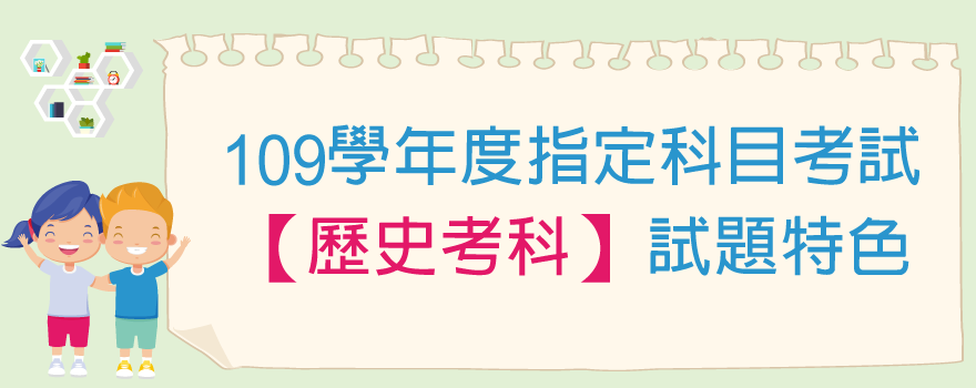 整體而言,109指考試題穩健平實,延續過去注重文本閱讀、分析理解的能力評量,也融入新課綱強調動態跨域的素養導向精神,充分展現命題團隊在銜接新、舊課綱的努力與用心。今年歷史科試卷首次採用高品質灰階印刷,圖像清晰分明,未來命題素材與題型設計可望更靈活多變,以圖說史或以圖考史的前景可期。本卷試題也著重史學方法的活用,顯示考生除需掌握史學基礎知識外,也應培養閱讀、理解、分析史料等綜合性能力,俾利面對日益講求統整與複合性概念的考試。
