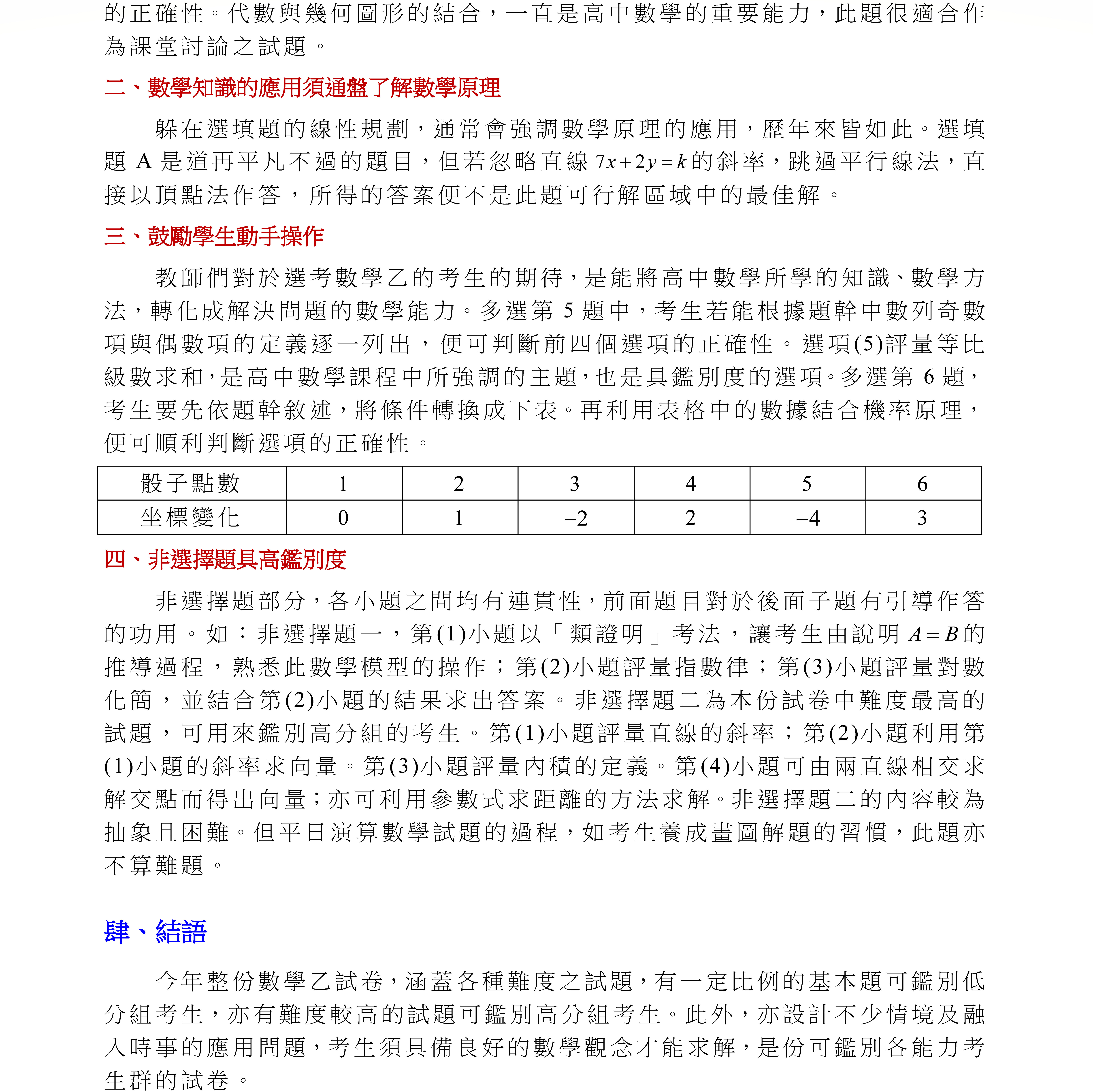 109學年度指定科目考試 【數學乙考科】試題特色