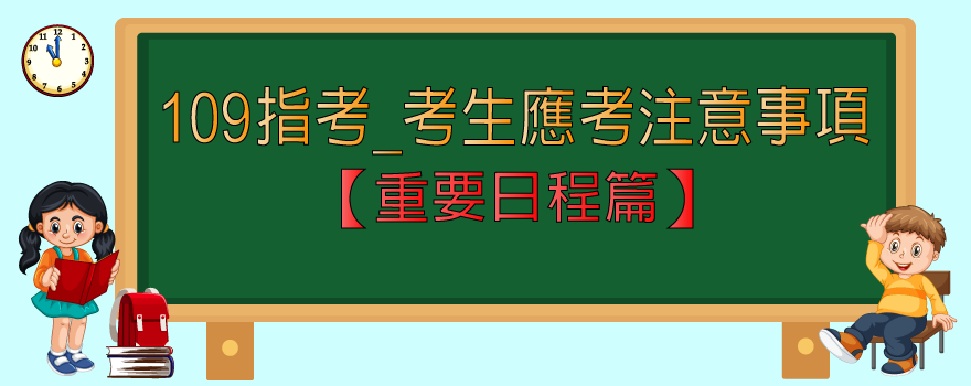 109學年度指定科目考試(簡稱109指考)即將於7月3日(五)至7月5日(日)登場。「知己知彼 百戰不殆」,選才電子報為服務考生,特推出考前溫馨提醒:109指考【重要日程篇】、【應試規則篇】及【必備用品篇】。