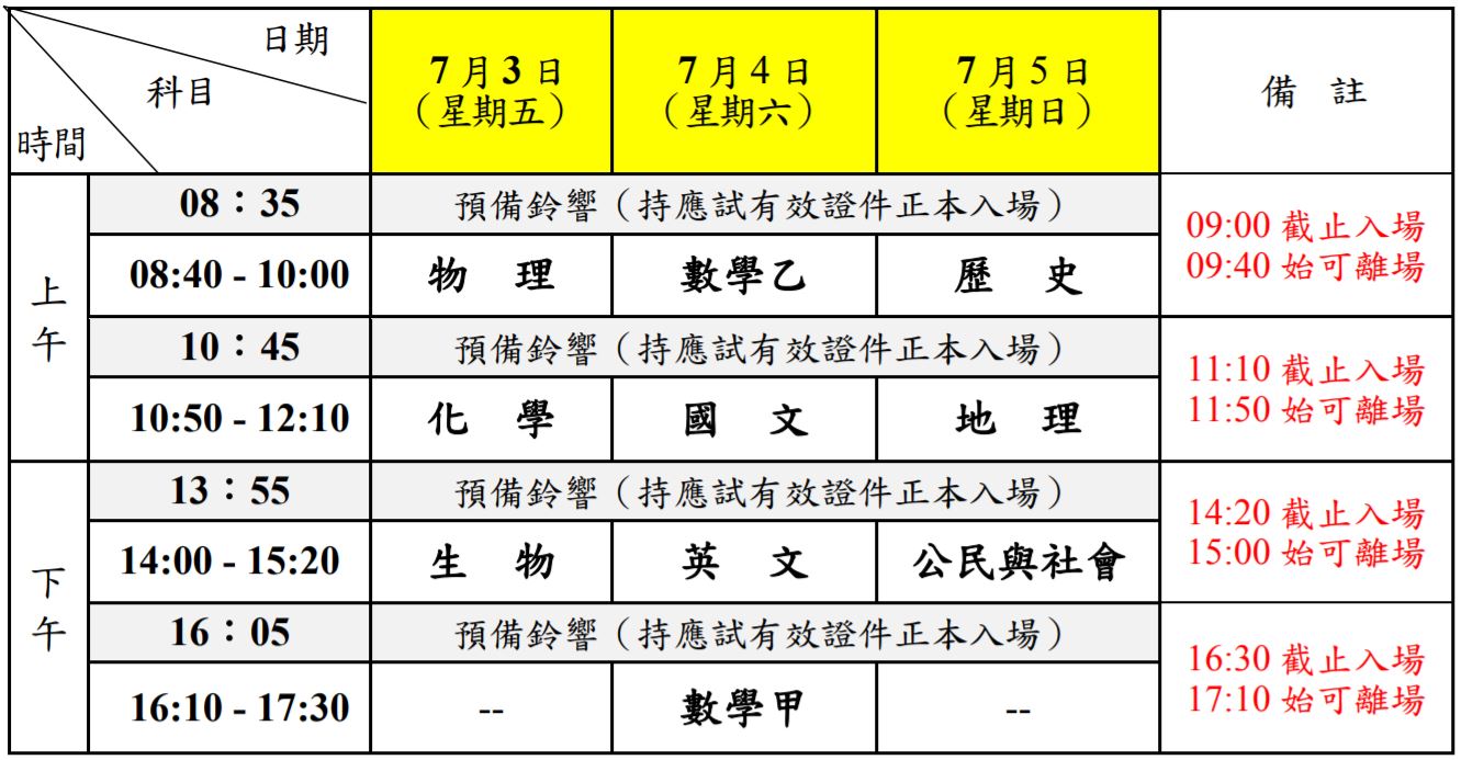 - 各科試題於當節考試結束後,於本中心網站https://www.ceec.edu.tw公布。